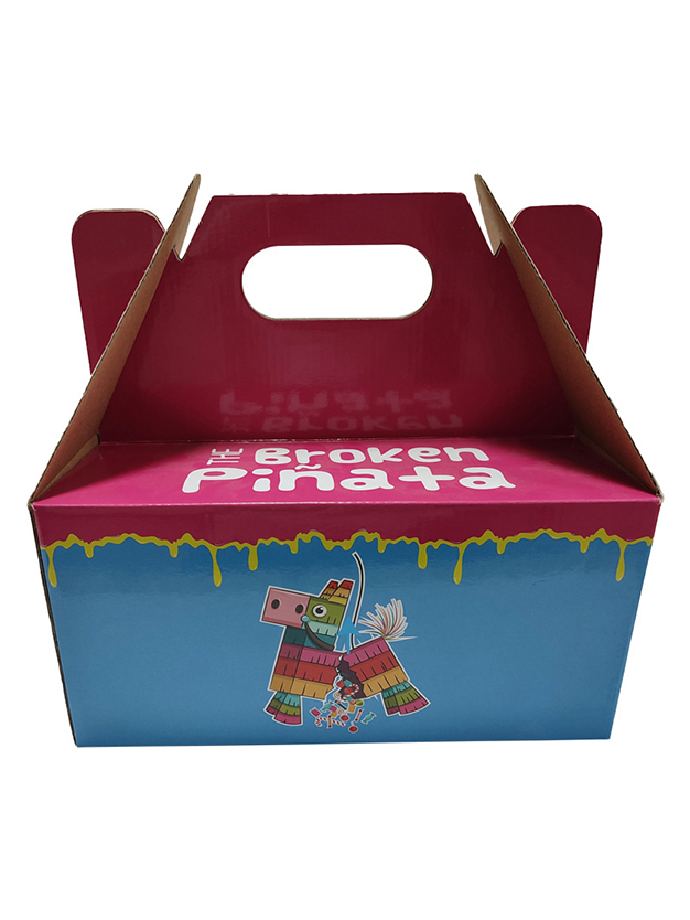 Hộp được thiết kế có quai xách tiện lợi để di chuyển, thường được sử dụng để đựng quà tặng, thực phẩm mang đi,…