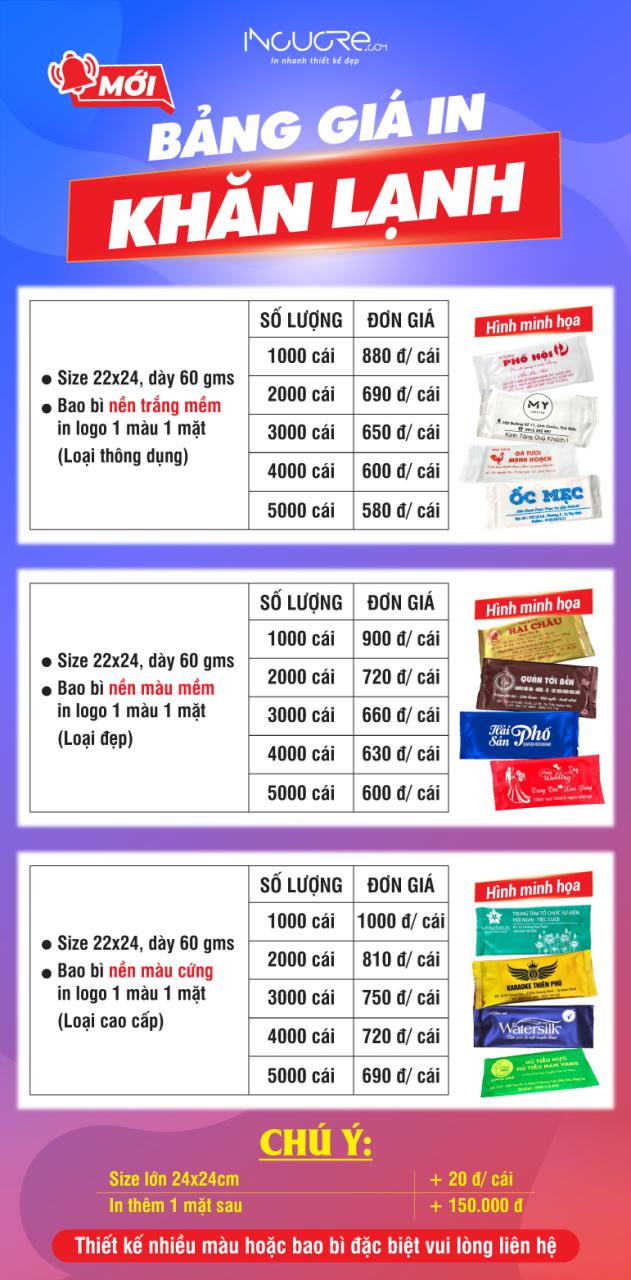 ✓ Bảng giá khăn lạnh với giá gốc tận xưởng