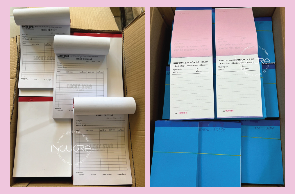 Đặt in hóa đơn bán lẻ, phiếu thu chi tại In Cực Rẻ khách hàng được cam kết về chất lượng sản phẩm, thời gian hoàn thành đơn hàng nhanh cùng mức giá tốt nhất trên thị trường.