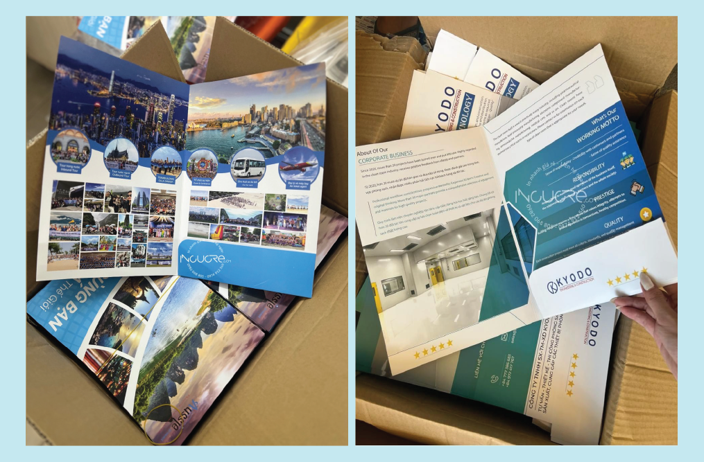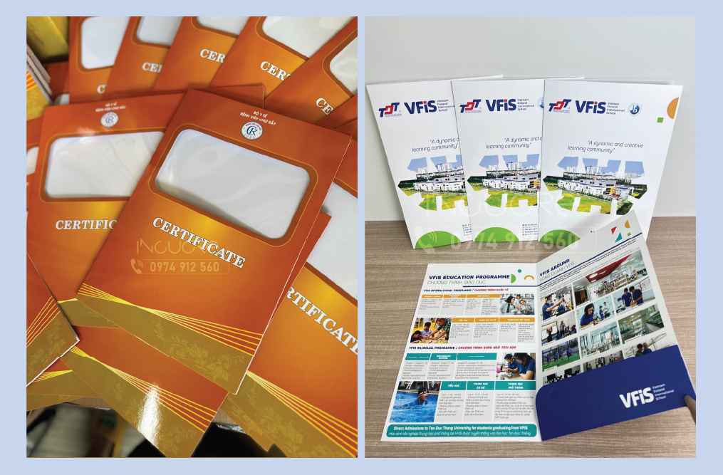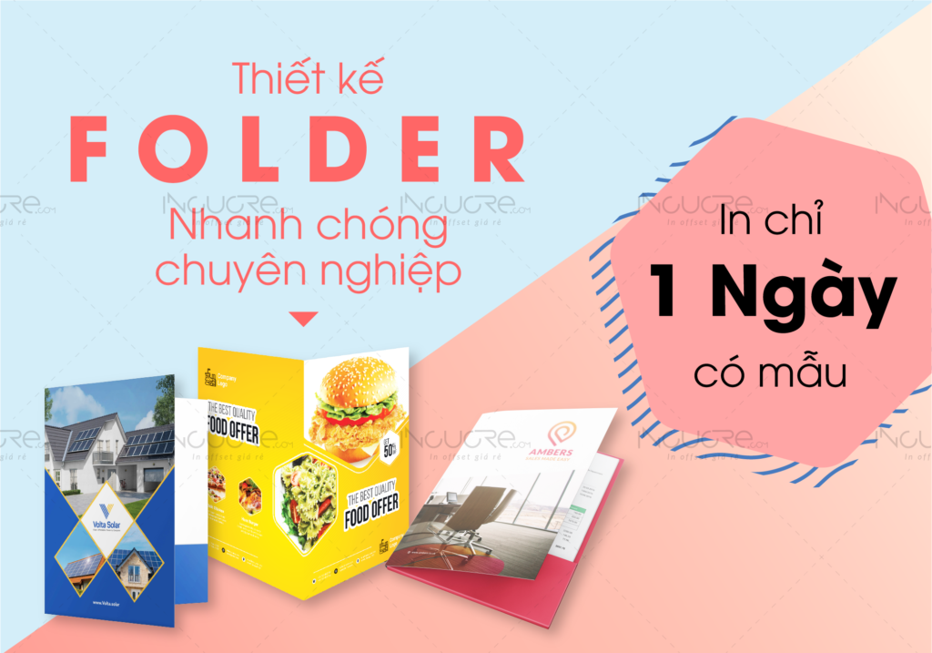 Folder là ấn phẩm gọn nhất để kinh doanh giao dịch với khách hàng, thông qua đó đựng được rất nhiều tài liệu , chứng từ liên quan, folder thường được thiết kế có tay gấp rất sang trọng
